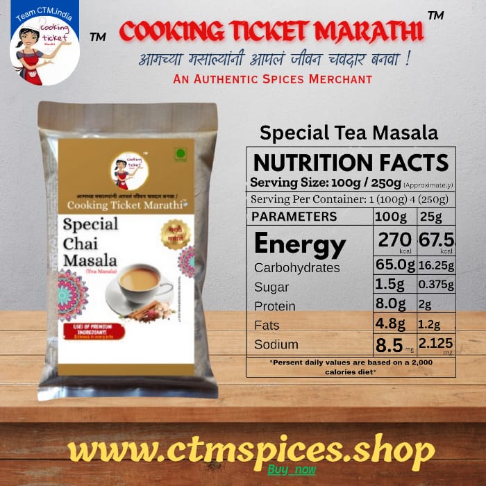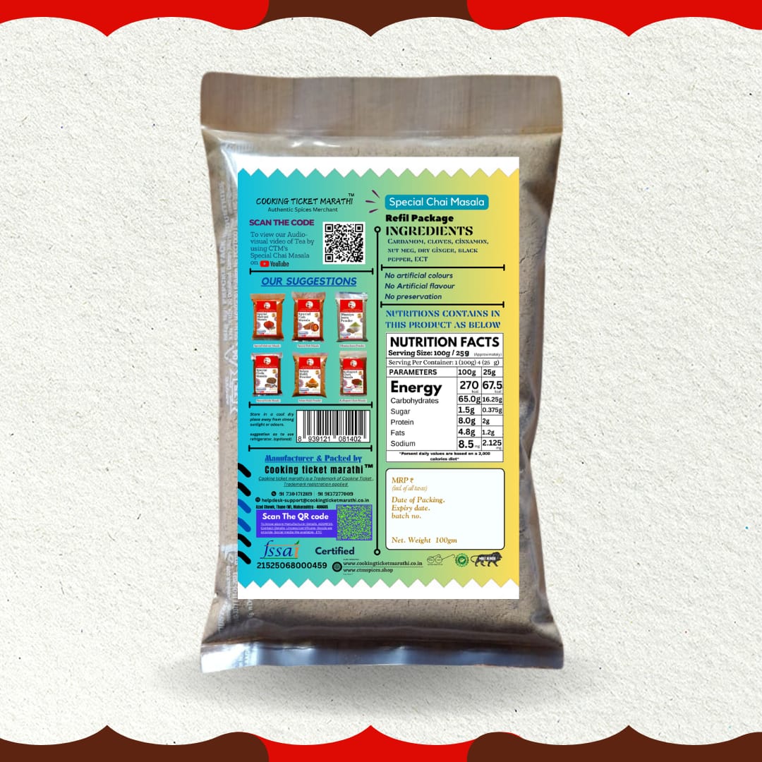 Cooking Ticket Marathi’s Special Chai Masala is a unique blend of handpicked organic Indian spices crafted to enhance the natural taste of your tea while also supporting digestion and reducing acidity. Unlike regular chai masalas, this formula is made with balanced spice ratios that give a refreshing aroma, soothing flavor, and a gentle boost of energy without causing stomach discomfort.