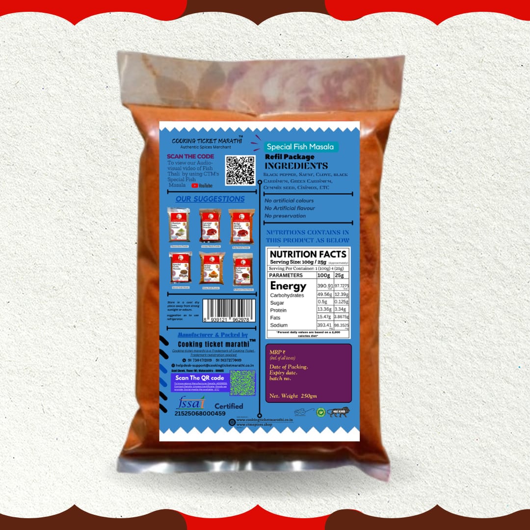 Special Fish Masala is a unique blend of spices, carefully crafted to enhance the flavor and aroma of fish dishes. Our Fish Masala is a masterful combination of spices, carefully roasted to bring out the delicate flavors of fish.