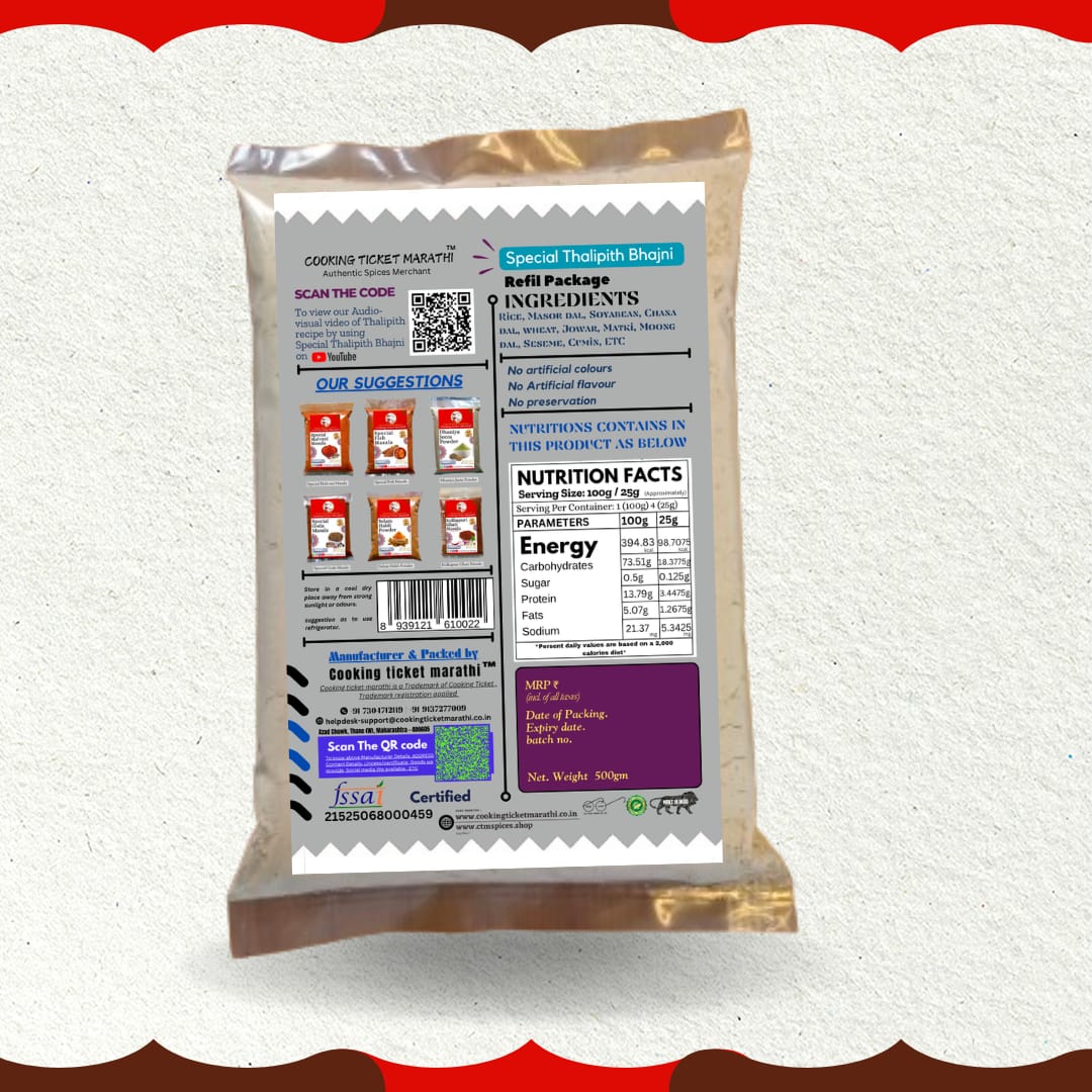 Special Thalipith Bhajani is a unique and flavorful Indian flour blend, carefully crafted to make delicious Thalipith, a traditional Maharashtrian flatbread. Our Special Thalipith Bhajani is a masterful blend of flours, expertly mixed to perfection.